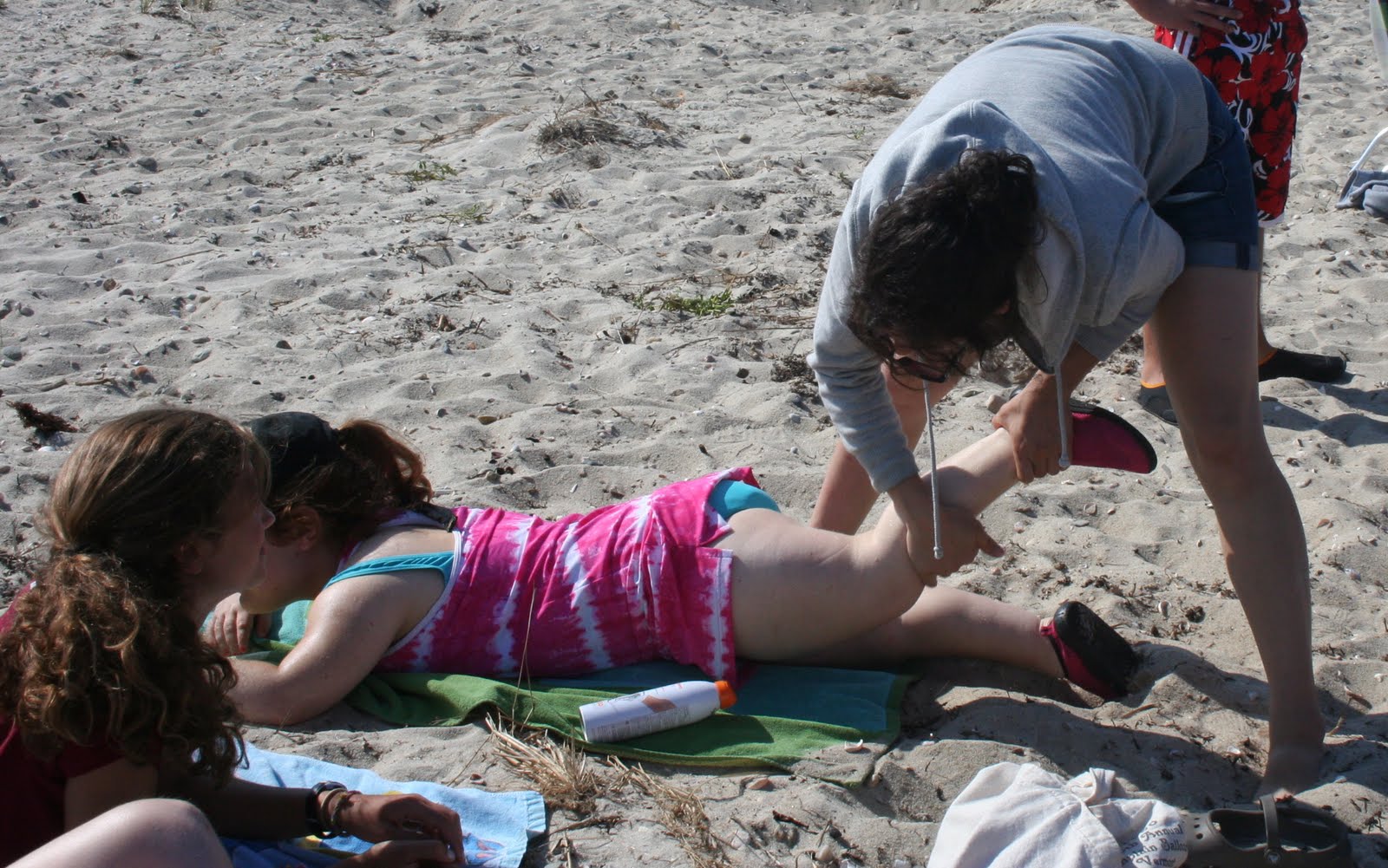 What a great counselor Brie is. She’s making sure Hannah won’t get sunburned legs.