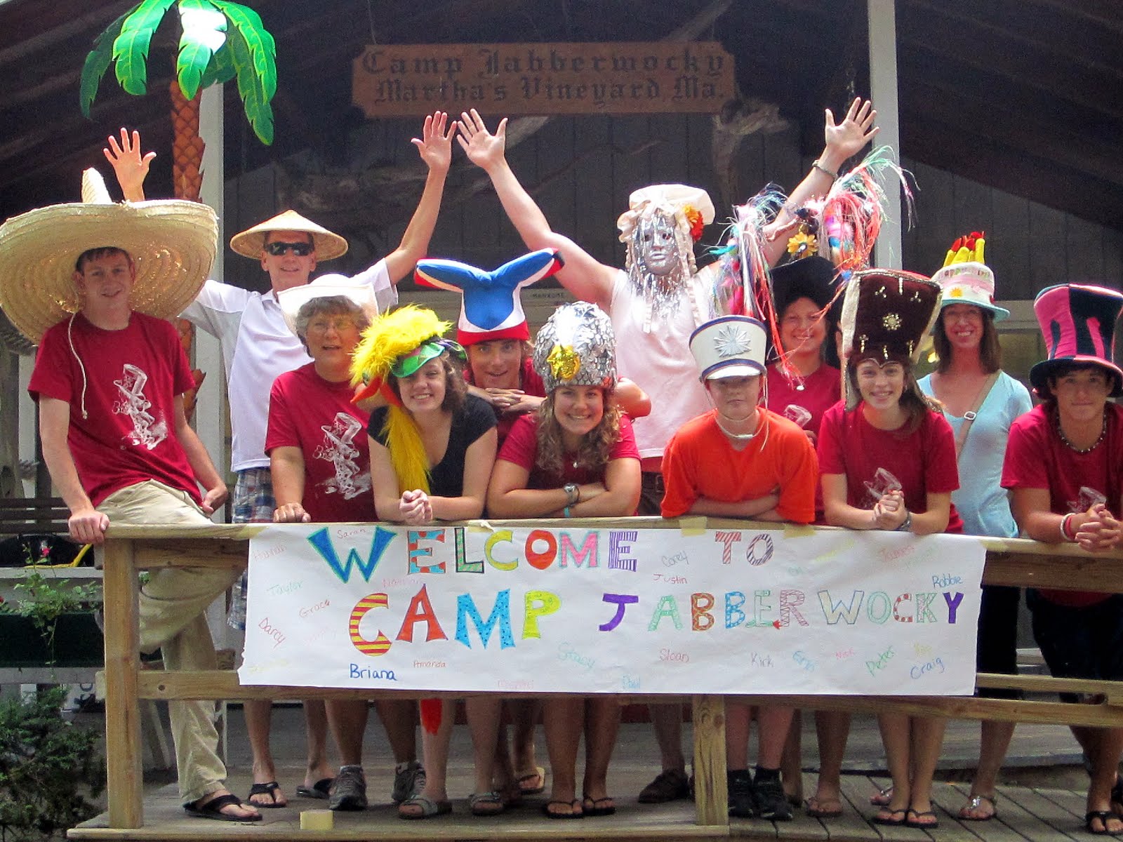 These fancifully-hatted counselors are waiting with baited breath to welcome campers to their first day of camp.