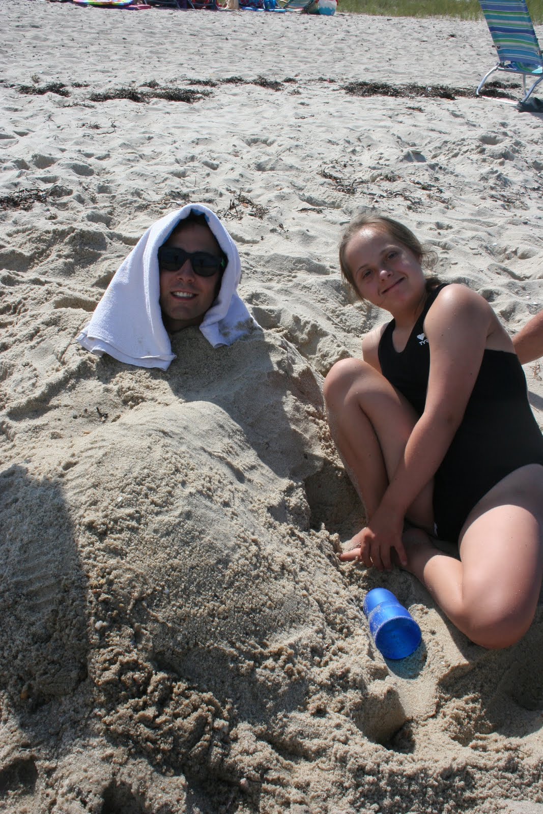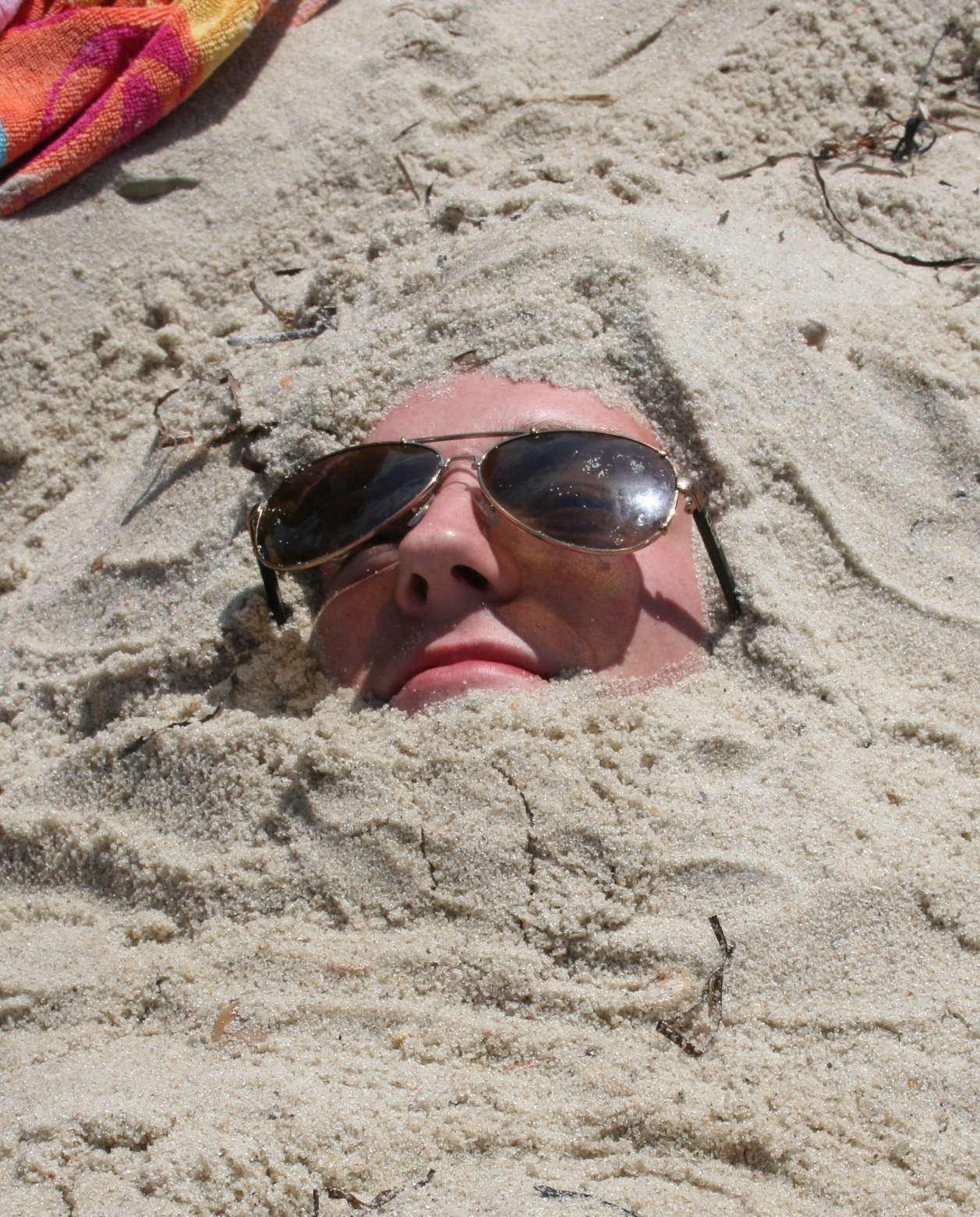 Enjoying the sunshine while wearing lots of sunscreen.