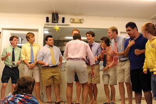 Yesterday was stupendous. We woke up to hot breakfast and headed to the MV Sharks baseball game! After some heckling and lemonade, our very own Mike, Jake, Kevin, Arran, Harry, and Peter joined a hot dog-eating competition. It was intense.