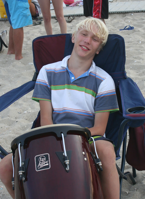 After unpacking all those nice, clean, folded clothes and stuffing them into boxes, we headed out to a late afternoon at the beach with a cookout and drumming.