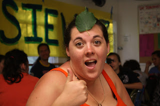 We also had the Sorting Hat tell us what team we were in for COLOR WARS!!!!!!! Which start tomorrow. Here are some pictures of the soon-to-be-winning team, the faBLUEous members of the blue team… and also a picture of Beth with a leaf on her head. Awkward, Beth.