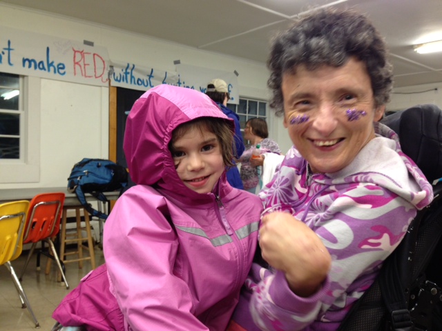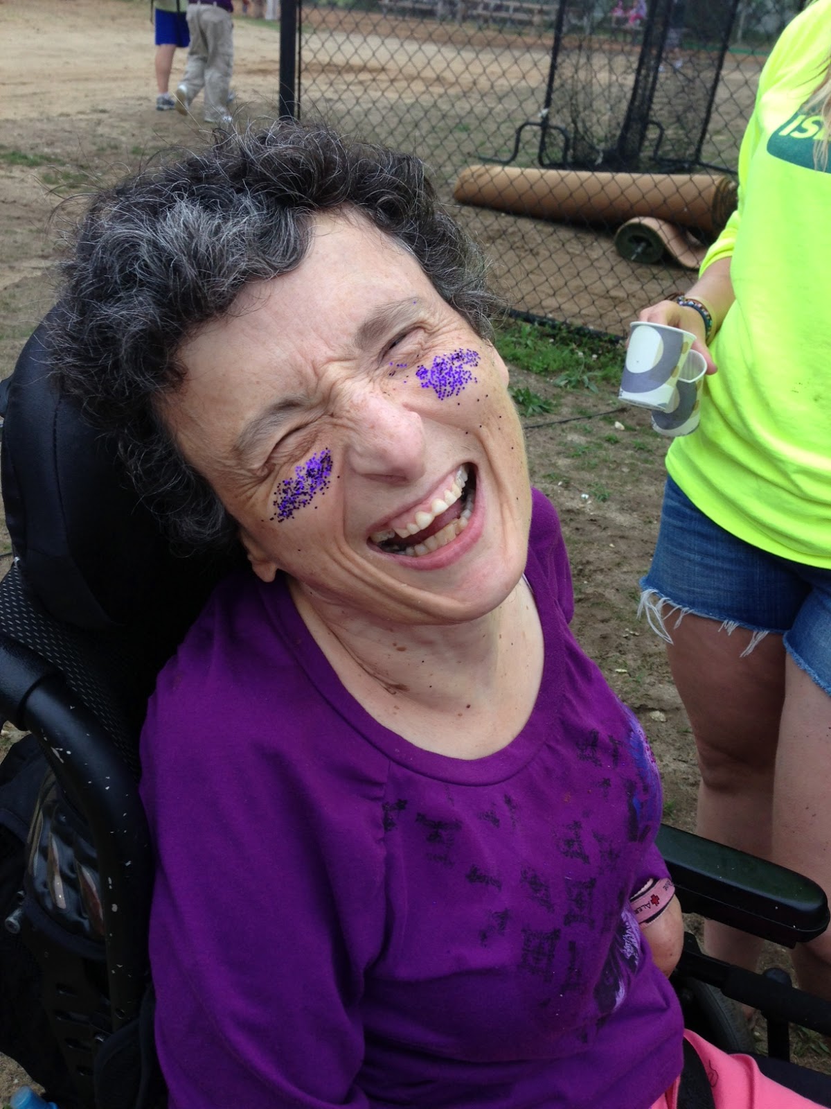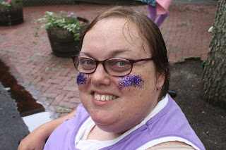 Because we are a collection of the luckiest people alive, the game didn’t get rained out. We celebrated by decking out our bodies with purple flare and making clever signs to read aloud to them in chanting fashion.