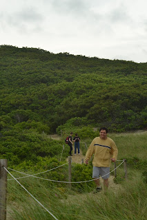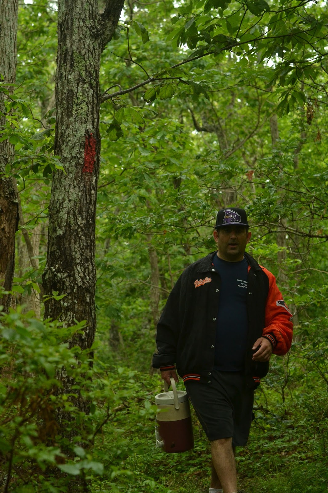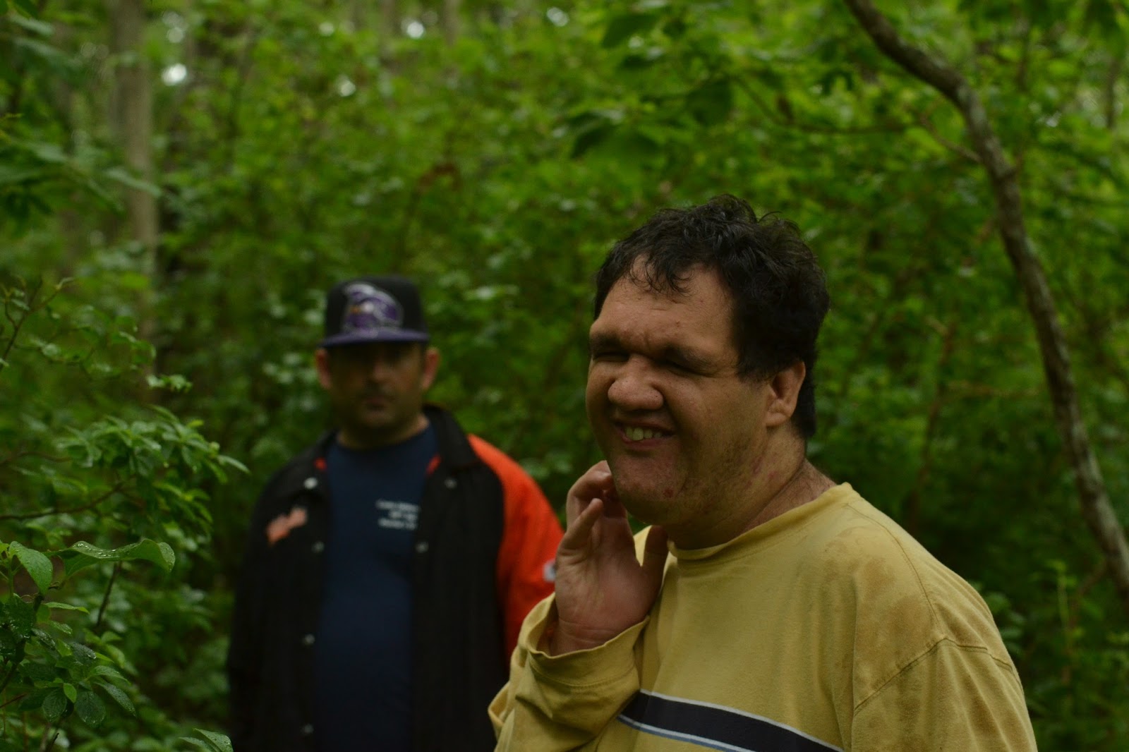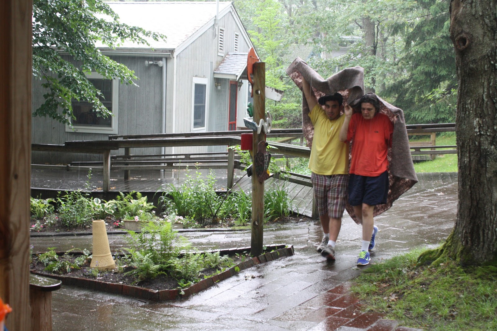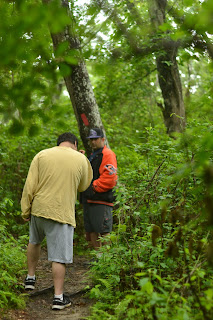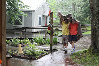 Elsewhere, Seth, Jakob, Jason, Hannah, and Michelle were on a hike in the pouring rain.