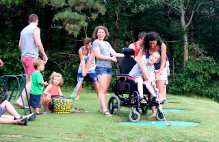 After “quick” showers, we snarfed down a delicious dinner of spaghetti and sausage bread, then headed out for Mink Meadows. |
