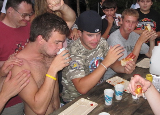 The “boys” decided to enter the hotdog eating contest,